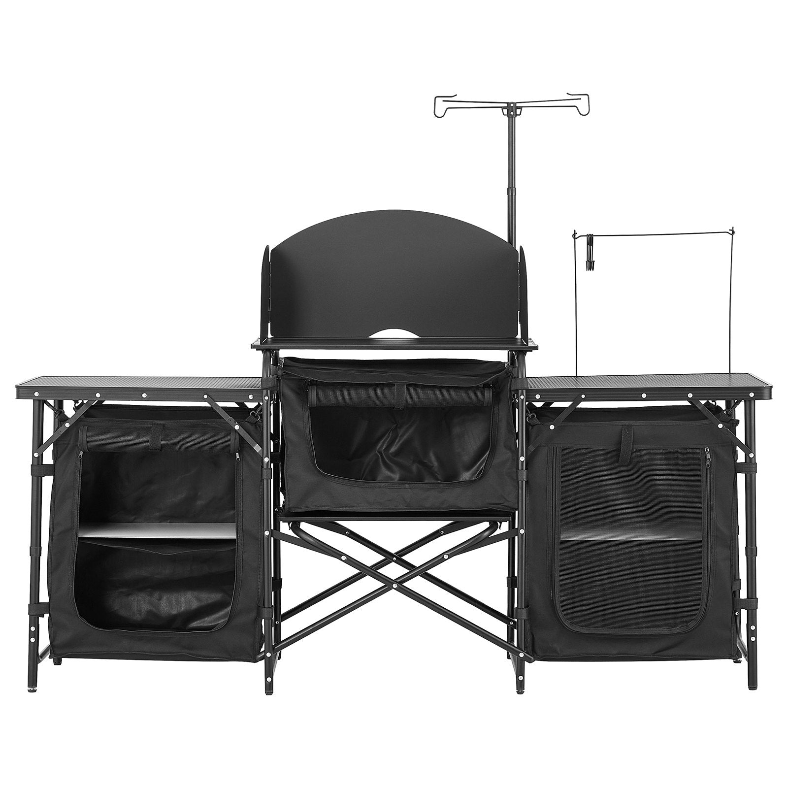 Camping Kitchen Table Portable Outdoor Cook Station Windshield Cupboard Aluminum